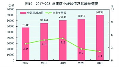全年建筑業(yè)增加值80138億元,比上年增長(zhǎng)2.1%。全國(guó)具有資質(zhì)等級(jí)的總承包和專業(yè)承包建筑業(yè)企業(yè)利潤(rùn)8554億元,比上年增長(zhǎng)1.3%,其中國(guó)有控股企業(yè)3620億元,增長(zhǎng)8.0%。(見(jiàn)圖10)