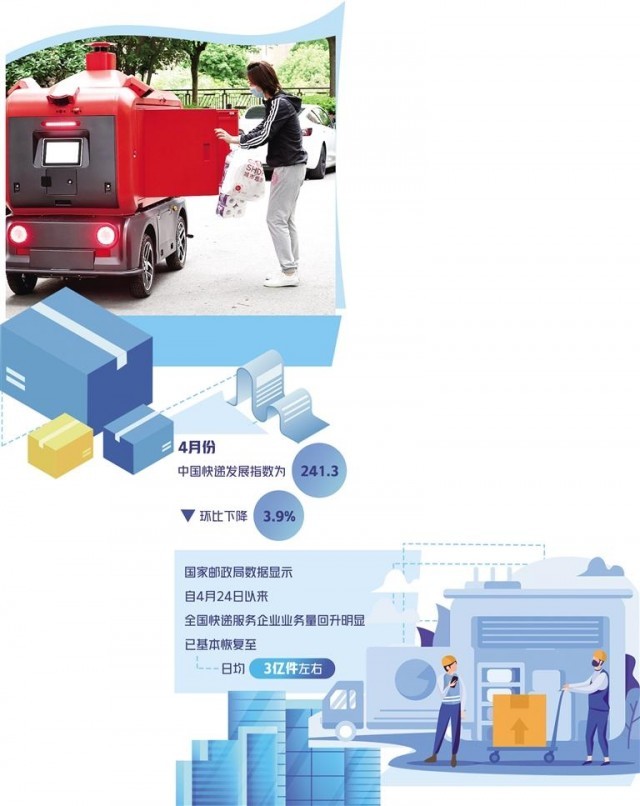 國(guó)家郵政局?jǐn)?shù)據(jù)顯示,自4月24日以來(lái),全國(guó)快遞服務(wù)企業(yè)業(yè)務(wù)量回升明顯,已基本恢復(fù)至日均3億件左右。從分項(xiàng)指標(biāo)來(lái)看,4月份,消費(fèi)者快遞服務(wù)滿意度78.3分,同比下降0.7分。