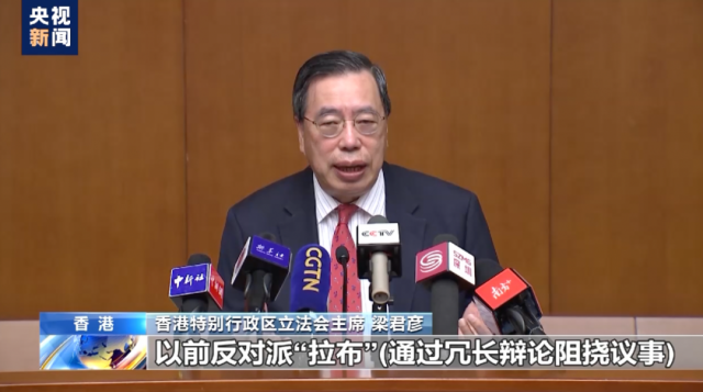 梁君彥說(shuō):“以前反對(duì)派‘拉布’(通過(guò)冗長(zhǎng)辯論阻撓議事),把你拉到什么都做不了。反對(duì)派就是用所有不同的方法拖‘一國(guó)兩制’的后腿。”