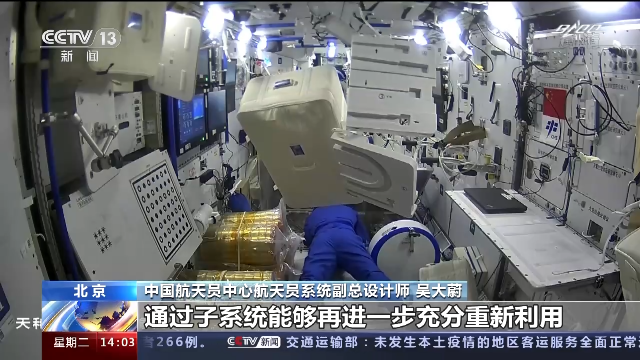中國航天員中心航天員系統(tǒng)副總設(shè)計(jì)師 吳大蔚:它(二氧化碳還原系統(tǒng))主要是能夠?qū)崿F(xiàn)再生,把我們呼出的二氧化碳,通過子系統(tǒng)能夠再進(jìn)一步充分重新利用,再用于我們的空間站,所以能夠節(jié)約大量資源,減少我們上行的資源和代價(jià)。