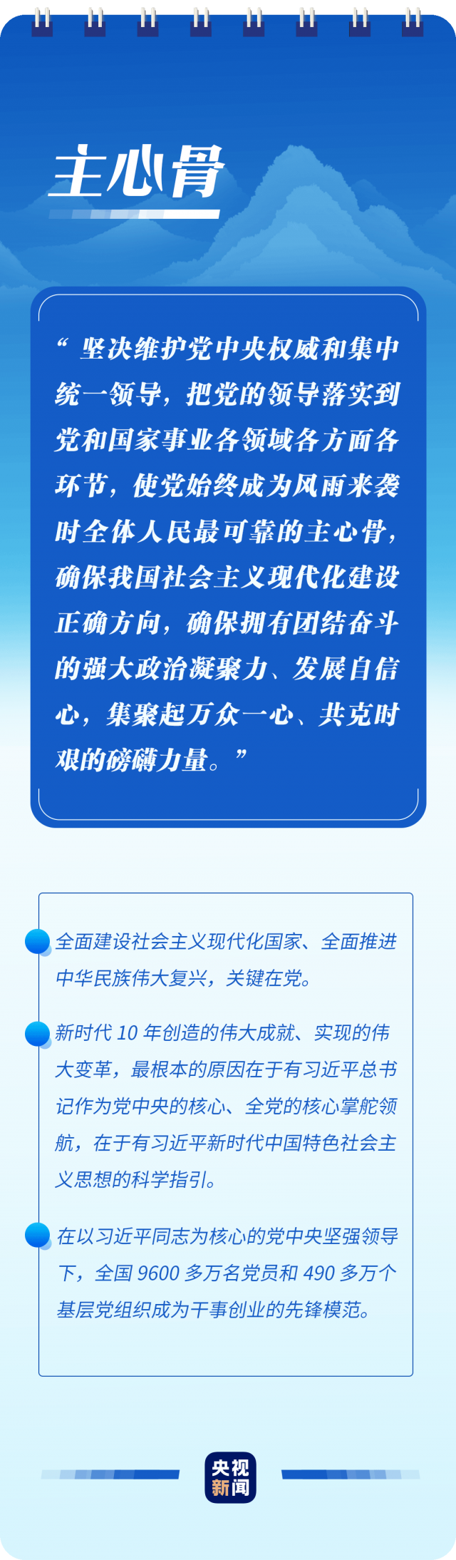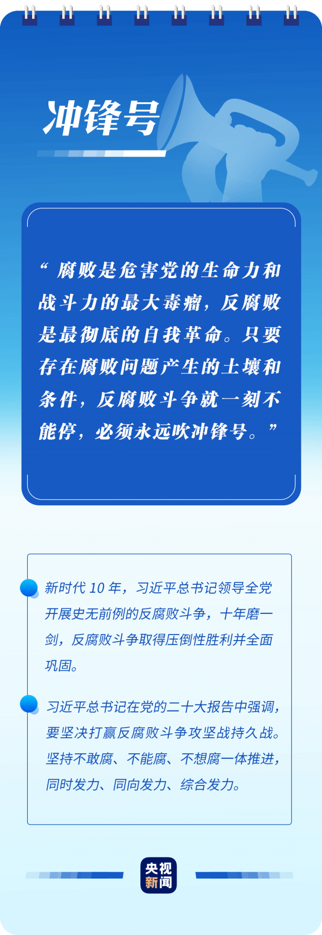 “只有植根本國、本民族歷史文化沃土,馬克思主義真理之樹才能根深葉茂”“使黨始終成為風(fēng)雨來襲時(shí)全體人民最可靠的主心骨”“只要存在腐敗問題產(chǎn)生的土壤和條件,反腐敗斗爭(zhēng)就一刻不能停,必須永遠(yuǎn)吹沖鋒號(hào)”……