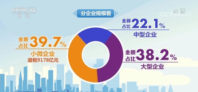 分企業(yè)規(guī)???,今年以來(lái),已獲得留抵退稅的納稅人中,小微企業(yè)戶(hù)數(shù)占比93.1%,是受益主體,共享受退稅9178億元,金額占比39.7%。中型企業(yè)、大型企業(yè)的金額占比分別為22.1%和38.2%。