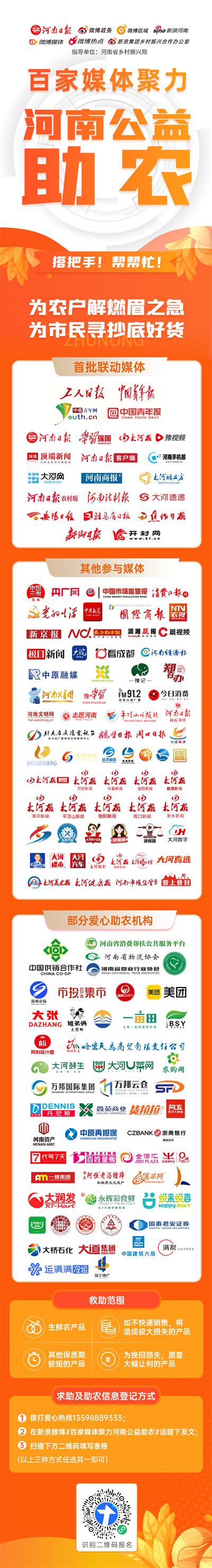 11月18日,由河南日報社聯(lián)合微博政務、微博區(qū)域、新浪河南、微博媒體、微博熱點、新浪集團鄉(xiāng)村振興合作辦公室發(fā)起,中國青年報、中國青年網(wǎng)等媒體聯(lián)動的“百家媒體聚力河南公益助農(nóng)”活動正式啟動。旨在百家媒體形成合力,搭建起信息共享的供銷互助平臺,最大程度動員全國采購力量,解決“非常時期”的河南農(nóng)產(chǎn)品滯銷難題。這些天來,百余家媒體發(fā)揮“最強信息中介”力量,幫助眾多農(nóng)戶對接銷售渠道,傾盡全力解決蔬菜賣難問題。