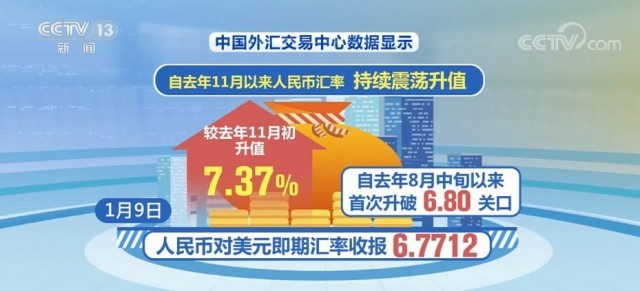 從去年底到今年開年至今,人民幣匯率走出了一波反彈回升行情。中國外匯交易中心數(shù)據(jù)顯示,自去年11月以來人民幣匯率持續(xù)震蕩升值。1月9日人民幣對美元即期匯率收報6.7712,較去年11月初升值7.37%,也是自去年8月中旬以來首次升破6.80關(guān)口。