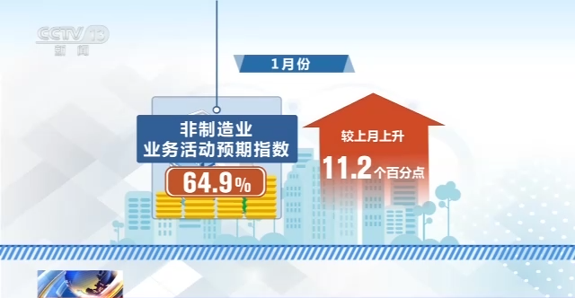 1月份中國非制造業(yè)商務(wù)活動指數(shù)為54.4%,較上月上升12.8個百分點(diǎn),結(jié)束連續(xù)6個月下降走勢;新訂單指數(shù)為52.5%,較上月上升13.4個百分點(diǎn),結(jié)束連續(xù)4個月下降走勢。非制造業(yè)供需呈現(xiàn)加速回升跡象。