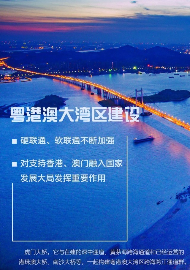 粵港澳大灣區(qū)建設持續(xù)推進,硬聯(lián)通、軟聯(lián)通不斷加強,對支持香港、澳門融入國家發(fā)展大局發(fā)揮重要作用;
