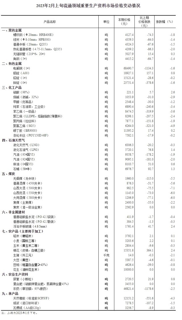 中新網(wǎng)2月14日電 據(jù)國家統(tǒng)計局網(wǎng)站14日消息,據(jù)對全國流通領(lǐng)域9大類50種重要生產(chǎn)資料市場價格的監(jiān)測顯示,2023年2月上旬與1月下旬相比,12種產(chǎn)品價格上漲,35種下降,3種持平。其中,生豬(外三元)價格為14元/千克,較1月下旬相比下降2.1%。(中新財經(jīng))