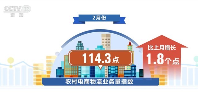 另外,農(nóng)村電商物流業(yè)務(wù)量連續(xù)增長。2月份,農(nóng)村電商物流業(yè)務(wù)量指數(shù)為114.3點(diǎn),比上月增長1.8個點(diǎn)。