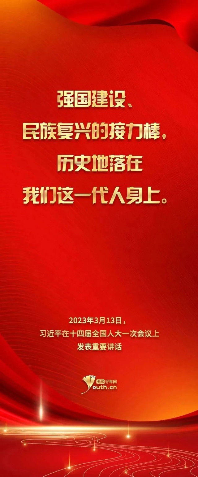 國(guó)家主席習(xí)近平在十四屆全國(guó)人大一次會(huì)議上指出,“從現(xiàn)在起到本世紀(jì)中葉,全面建成社會(huì)主義現(xiàn)代化強(qiáng)國(guó)、全面推進(jìn)中華民族偉大復(fù)興,是全黨全國(guó)人民的中心任務(wù)。強(qiáng)國(guó)建設(shè)、民族復(fù)興的接力棒,歷史地落在我們這一代人身上。”