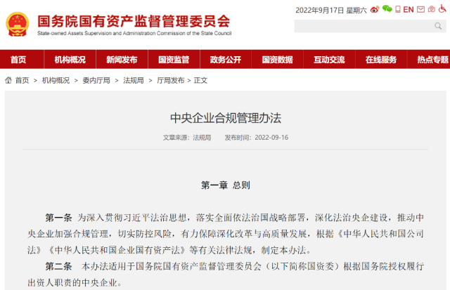 2022年,國資委印發(fā)《中央企業(yè)合規(guī)管理辦法》。管理辦法在充分借鑒世界一流企業(yè)先進經(jīng)驗的基礎(chǔ)上,明確提出中央企業(yè)應(yīng)當結(jié)合實際設(shè)立首席合規(guī)官,不新增領(lǐng)導(dǎo)崗位和職數(shù),由總法律顧問兼任,對企業(yè)主要負責人負責,領(lǐng)導(dǎo)合規(guī)管理部門組織開展相關(guān)工作,指導(dǎo)所屬單位加強合規(guī)管理。(記者王希)