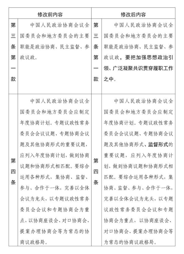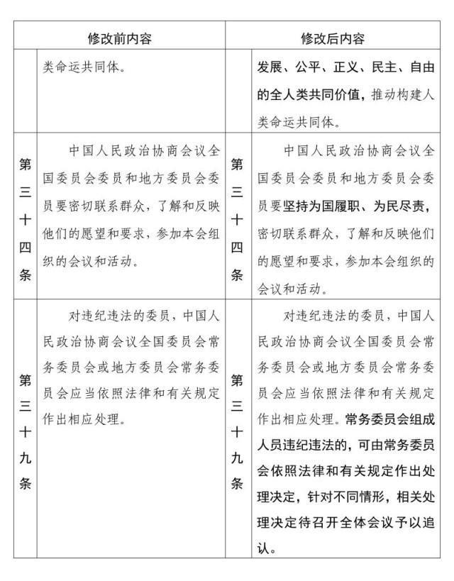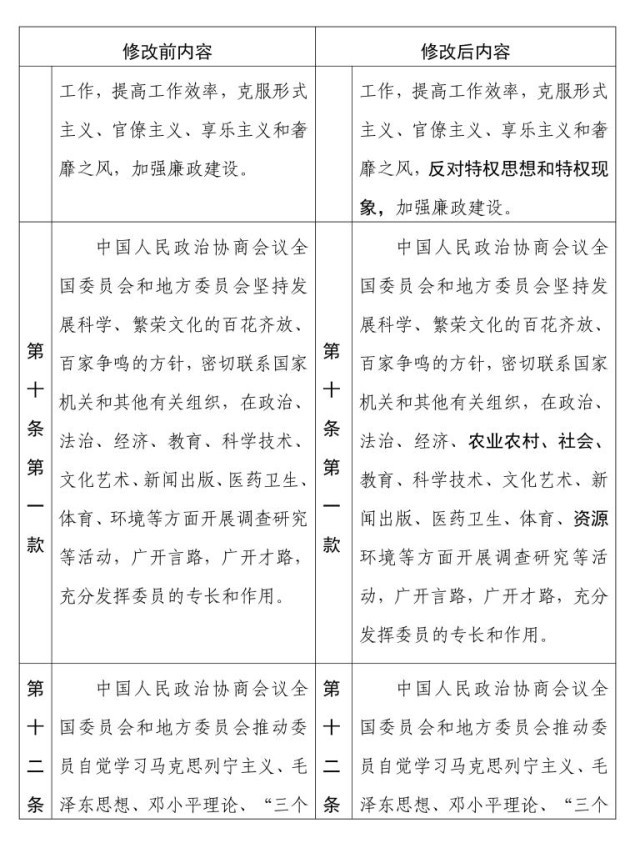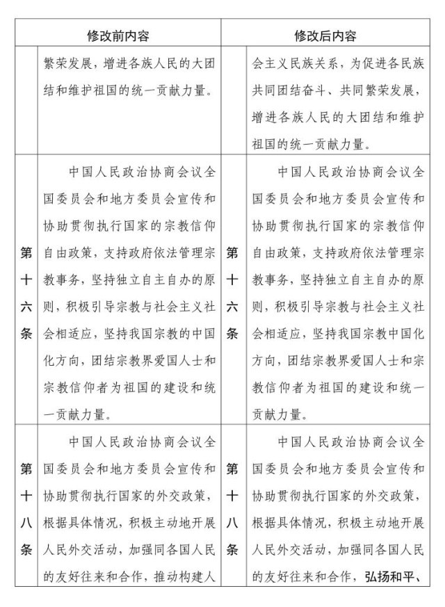 中國人民政治協(xié)商會議章程 修改前后內容對照表