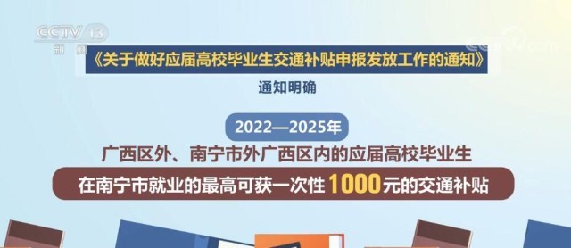近期,南寧市人社局印發(fā)了《關于做好應屆高校畢業(yè)生交通補貼申報發(fā)放工作的通知》,其中明確,2022—2025年,廣西區(qū)外、南寧市外廣西區(qū)內(nèi)的應屆高校畢業(yè)生,在南寧市就業(yè)的最高可獲一次性1000元的交通補貼。