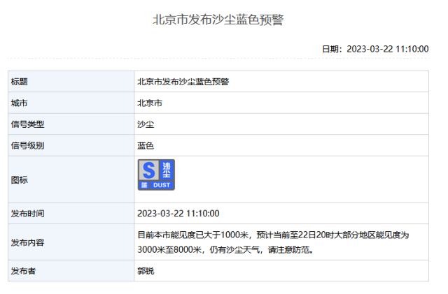 北京降級發(fā)布沙塵藍(lán)色預(yù)警