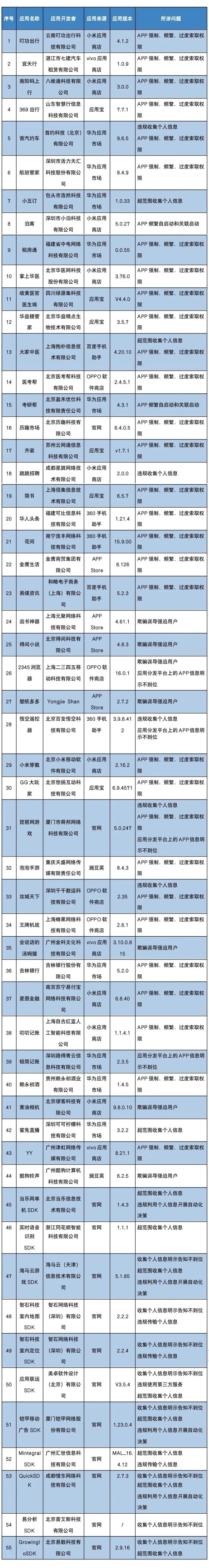 工信部3月21日對叮功出行、宜天行等55款侵害用戶權(quán)益的移動互聯(lián)網(wǎng)應(yīng)用程序(APP)及第三方軟件開發(fā)工具包(SDK)進(jìn)行通報,要求這55款A(yù)PP及SDK按有關(guān)規(guī)定進(jìn)行整改。