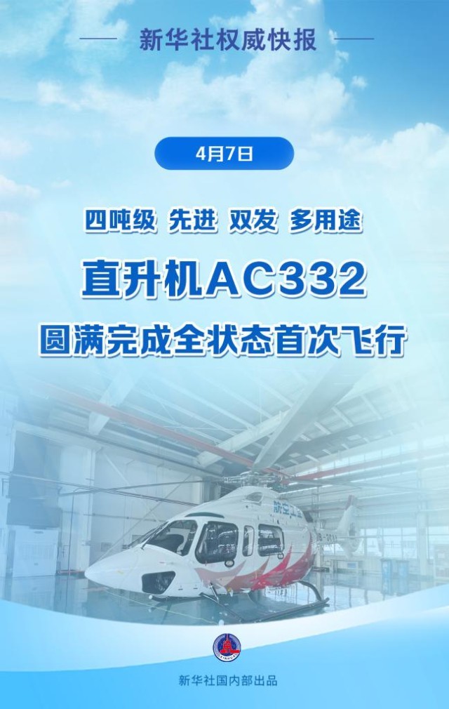 我國全新研制的AC332直升機(jī)圓滿完成全狀態(tài)首次飛行