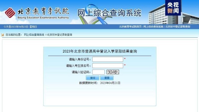 4月22日,北京教育考試院公布了今年本市普通高中登記入學(xué)錄取結(jié)果。報(bào)名學(xué)生可通過(guò)考試院網(wǎng)站,輸入身份證號(hào)和考生報(bào)名號(hào)查詢。