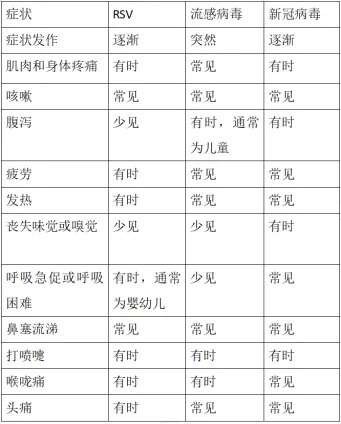 針對年初到現(xiàn)在流行的新冠病毒、甲型流感病毒和呼吸道合胞病毒,唐蘭芳解釋說,這三種病毒都是通過呼吸道傳播、且傳染性強(qiáng)的病毒,均會引起發(fā)熱、咳嗽及鼻塞流涕等癥狀,因此有時很難區(qū)分感染了哪種病毒,雖然這些病毒有不少相似的癥狀,但也有一些區(qū)別,如流感病毒感染潛伏期短,通常是突然發(fā)熱,高熱為主,而另外兩種則是逐漸發(fā)病,且呼吸道合胞病毒感染的患兒中腹瀉較為少見,可以參考表格內(nèi)容,明確診斷的話建議行相關(guān)核酸或抗原檢測。