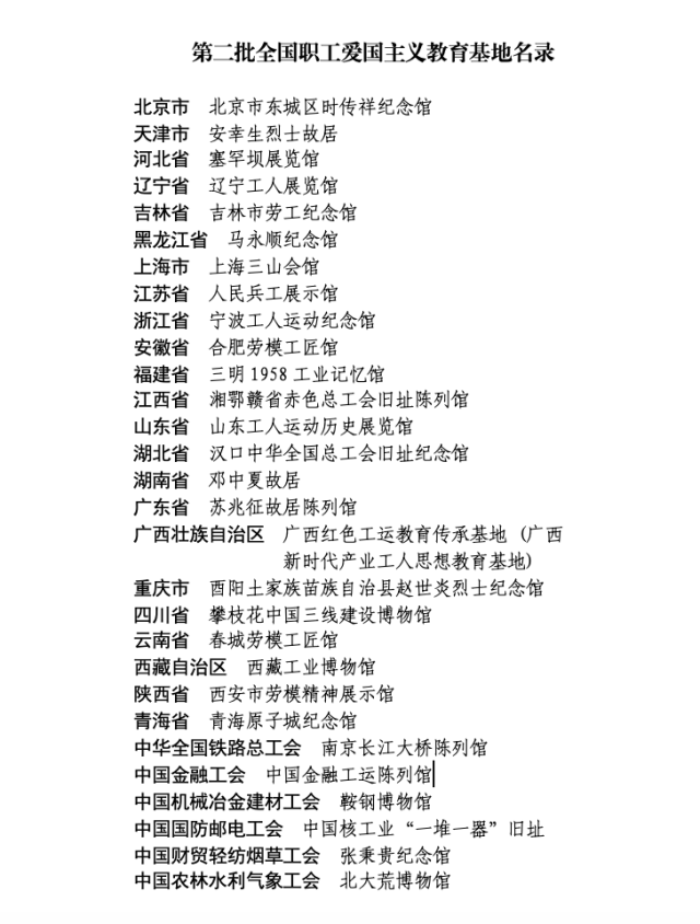 記者5月22日從全國總工會獲悉,全總命名的第二批全國職工愛國主義教育基地日前正式公布,北京市東城區(qū)時傳祥紀(jì)念館等29家單位入選。