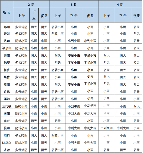 根據(jù)預(yù)報(bào),此次過程降水時(shí)段集中在3日下午到4日白天,過程累計(jì)降水量西南部、南部20到40毫米,部分縣市50到80毫米,中部偏南地區(qū)15到20毫米。黃河以南其他地區(qū)有小到中雨,降水量5到15毫米。新鄉(xiāng)、焦作、濟(jì)源有陣雨,降水量2到5毫米。安陽(yáng)、鶴壁、濮陽(yáng)以多云為主,有分散性小陣雨。
