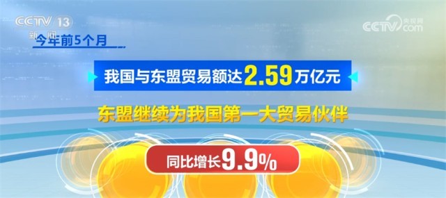 今年前5個月,我國與東盟貿(mào)易額達(dá)2.59萬億元,東盟繼續(xù)為我國第一大貿(mào)易伙伴,同比增長9.9%。