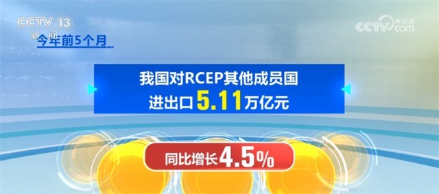 隨著區(qū)域經(jīng)濟(jì)交往不斷互聯(lián)互通,我國對《區(qū)域全面經(jīng)濟(jì)伙伴關(guān)系協(xié)定》(RCEP)其他成員進(jìn)出口穩(wěn)定增長,今年前5個月,我國對RCEP其他成員國進(jìn)出口5.11萬億元,同比增長4.5%,RCEP占我國外貿(mào)比重超過30%。