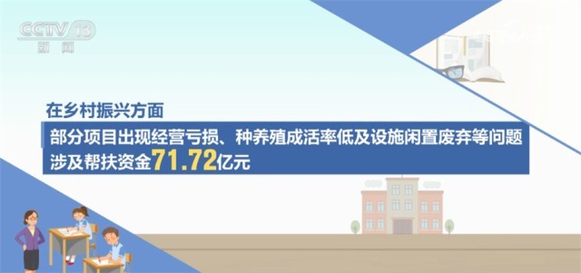 在鄉(xiāng)村振興方面,部分項(xiàng)目出現(xiàn)經(jīng)營虧損、種養(yǎng)殖成活率低及設(shè)施閑置廢棄等問題,涉及幫扶資金71.72億元。