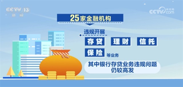25家金融機(jī)構(gòu)違規(guī)開展存貸、理財(cái)、信托、保險(xiǎn)等業(yè)務(wù),其中銀行存貸業(yè)務(wù)違規(guī)問題仍較高發(fā)。