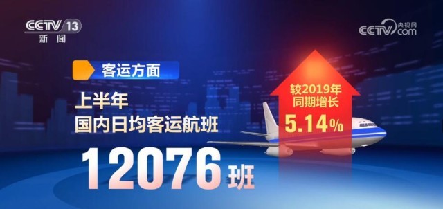 客運(yùn)方面,上半年國內(nèi)日均客運(yùn)航班12076班,較2019年同期增長5.14%;國內(nèi)日均旅客運(yùn)輸量152.2萬人次,恢復(fù)至2019年同期的96.5%。貨運(yùn)方面,上半年日均保障貨運(yùn)航班590班,較2019年同期增長58.2%。