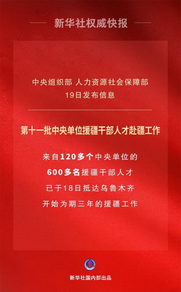 7月18日,中央組織部、人力資源社會保障部有關(guān)負(fù)責(zé)同志帶隊,送第十一批中央單位援疆干部人才抵達(dá)烏魯木齊,開始了為期三年的援疆工作。