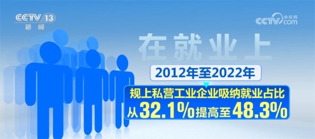 在稅收上,2012年至2021年,民企占比從48%提升至59.6%。在就業(yè)上,2012年至2022年,規(guī)上私營工業(yè)企業(yè)吸納就業(yè)占比從32.1%提高至48.3%。在數(shù)量上,2012年至2022年,民企數(shù)量占比從79.4%增長到93.3%。在外貿(mào)上,民企從2019年起成為第一大外貿(mào)主體,2022年占比達(dá)50.9%。