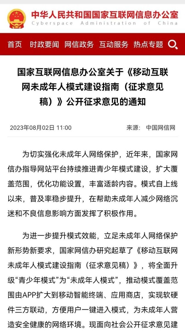 將全面升級“青少年模式”為“未成年人模式”! 《移動互聯(lián)網(wǎng)未成年人模式建設(shè)指南》征求意見