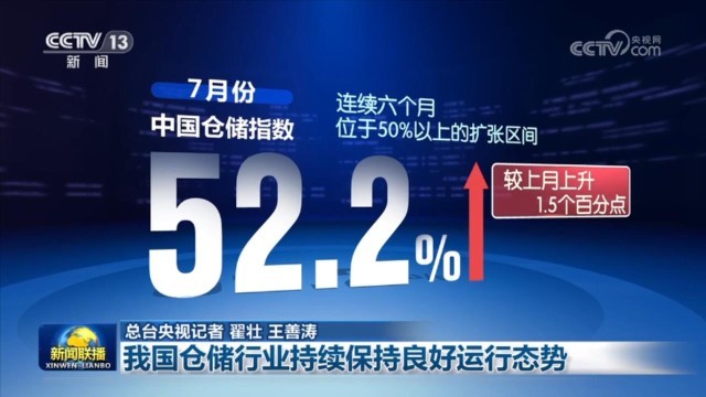中國物流與采購聯(lián)合會(huì)2日公布,今年7月份,中國倉儲(chǔ)指數(shù)為52.2%,連續(xù)六個(gè)月位于50%以上的擴(kuò)張區(qū)間。數(shù)據(jù)顯示,倉儲(chǔ)企業(yè)生產(chǎn)經(jīng)營活動(dòng)活躍,業(yè)務(wù)量明顯增長,企業(yè)對(duì)市場前景保持樂觀。