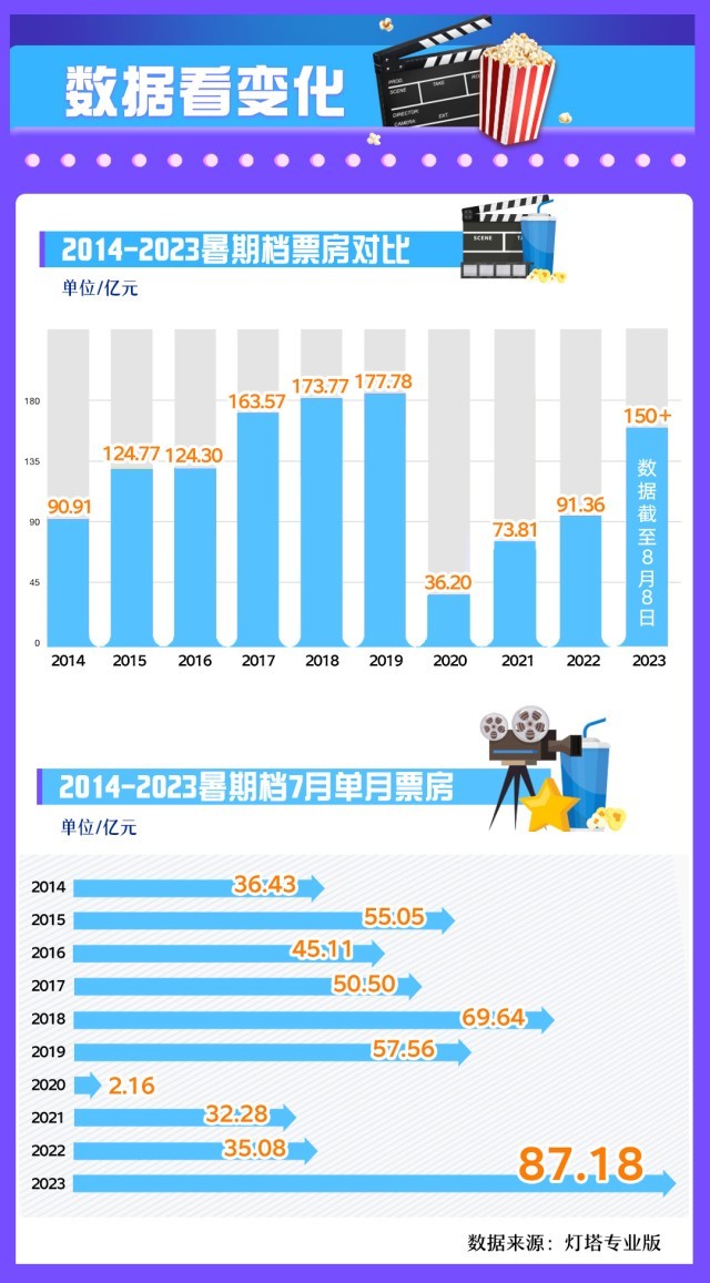 截至記者發(fā)稿,暑期檔票房已突破150億,時(shí)隔四年后重回“百億”級。