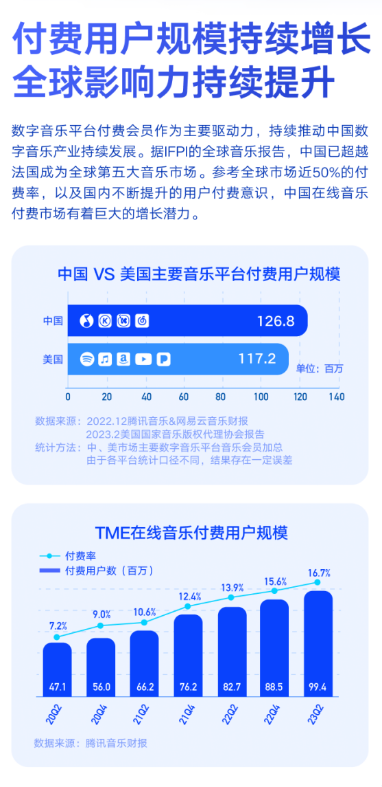 騰訊音樂在財報中表示,今年6月,公司迎來了在線音樂付費用戶破億的里程碑時刻。這不僅反映了TME作為中國領先在線音樂平臺的實力,也體現(xiàn)了廣大音樂愛好者對其所提供優(yōu)質內容與服務的強有力認可。