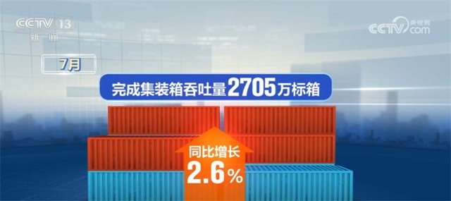 7月,全國(guó)港口貨物吞吐量達(dá)14.3億噸,同比增長(zhǎng)6.6%,其中,內(nèi)、外貿(mào)吞吐量同比分別增長(zhǎng)5.8%和8.5%。完成集裝箱吞吐量2705萬標(biāo)箱,同比增長(zhǎng)2.6%。