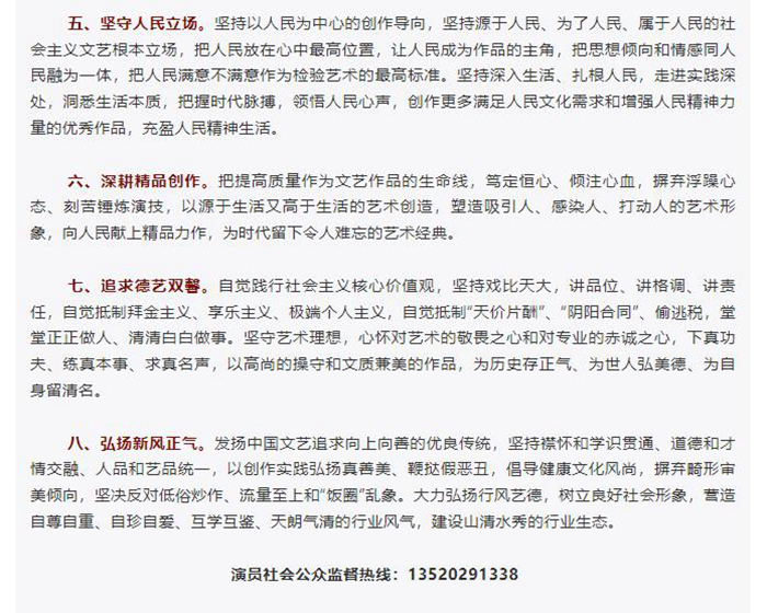 中國廣播電視社會組織聯合會演員委員會《新時代演員職業(yè)道德準則》截圖。
