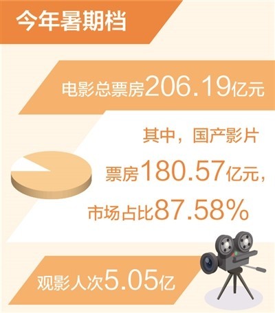 電影暑期檔票房達(dá)206.19億元 刷新歷史同檔期最高紀(jì)錄