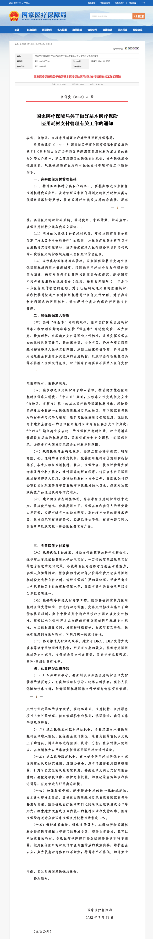國家醫(yī)保局印發(fā)通知,明確納入醫(yī)保支付的耗材范圍