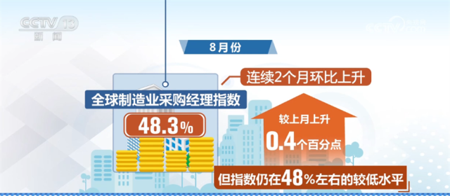8月份全球制造業(yè)采購經理指數為48.3%,較上月上升0.4個百分點,連續(xù)2個月環(huán)比上升,但指數仍在48%左右的較低水平,全球經濟呈弱勢修復態(tài)勢,總體趨緊的大環(huán)境沒有改變,需求收縮壓力仍然存在。