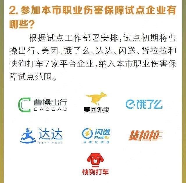 據(jù)了解,“新型社?!痹圏c(diǎn)從去年7月1日啟動實施,第一批試點(diǎn)在曹操出行、美團(tuán)、餓了么、達(dá)達(dá)、閃送、貨拉拉、快狗打車7家平臺企業(yè),在全國7個省市開展。