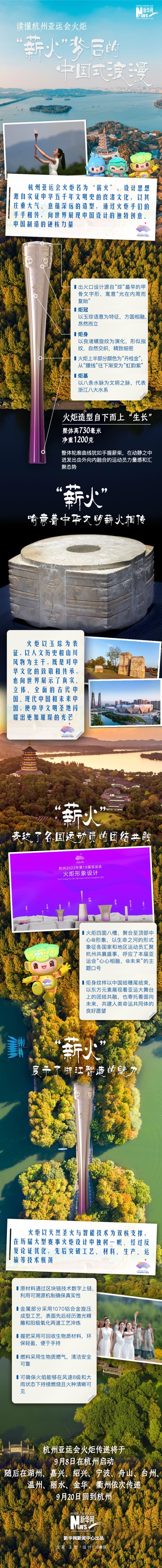 距離杭州亞運會開幕越來越近,9月8日,杭州亞運會火炬?zhèn)鬟f也將正式開啟。杭州亞運會火炬名為“薪火”,設(shè)計思想源自實證中華五千年文明史的良渚文化,其莊重大氣、意蘊深遠(yuǎn)的造型包含著濃郁的傳統(tǒng)文化與哲思,展現(xiàn)出中國設(shè)計的獨特創(chuàng)意。今天,讓我們一起品讀“薪火”里的中國式浪漫。