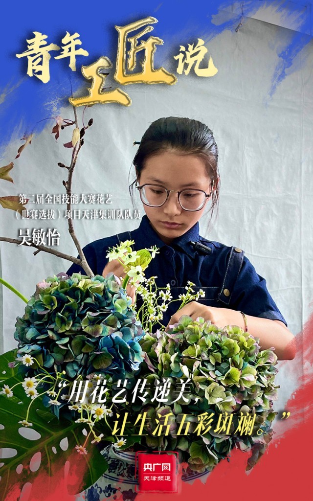 青春,是以工匠精神筑就美好生活的底色。走進(jìn)位于天津農(nóng)學(xué)院花藝(世賽選拔)項(xiàng)目的集訓(xùn)現(xiàn)場,生機(jī)盎然、芬芳馥郁,天津集訓(xùn)隊(duì)隊(duì)員吳敏怡正在挑選花材和花器,為每一件作品賦予一番獨(dú)特的意境。從2023年5月以來,吳敏怡每天要與花相伴12個(gè)小時(shí),在審美及技術(shù)水平上的提高也讓她很有成就感。對于本次比賽,她也充滿期待:“我的目標(biāo)是起碼能拿一個(gè)優(yōu)勝獎,也是為了突破自己,讓自己的花藝技術(shù)更上一層樓?!彼f,她也將用花藝傳遞生活中的美,讓生活五彩斑斕。
