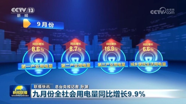央視網(wǎng)消息:據(jù)今天(10月16日)國家能源局公布的最新消息,9月份全社會用電量同比增長9.9%,不斷攀升的電力數(shù)據(jù)從側(cè)面反映出國民經(jīng)濟(jì)活力充沛。另外,我國在金融證券管理、能源開發(fā)、交通基建等多個領(lǐng)域發(fā)展勢頭良好,各類展會運行順暢、亮點紛呈。