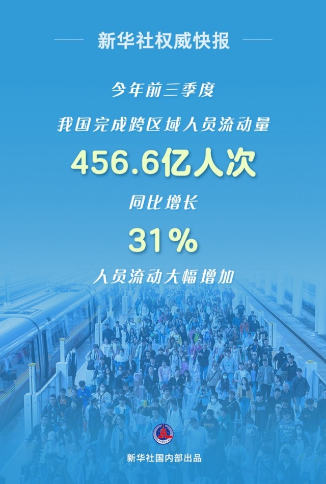 我國(guó)完成跨區(qū)域人員流動(dòng)量456.6億人次,同比增長(zhǎng)31%,跨區(qū)域人員流動(dòng)量超過(guò)疫情前同期水平