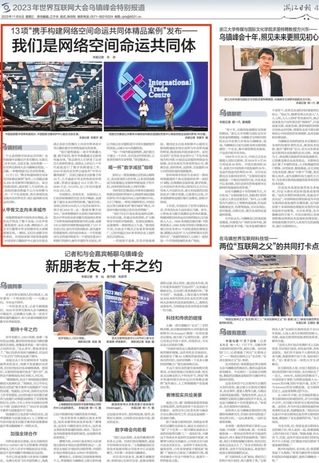 11月8日,《浙江日報》刊發(fā)《13項“攜手構(gòu)建網(wǎng)絡(luò)空間命運共同體精品案例”發(fā)布——我們是網(wǎng)絡(luò)空間命運共同體》,全文如下: