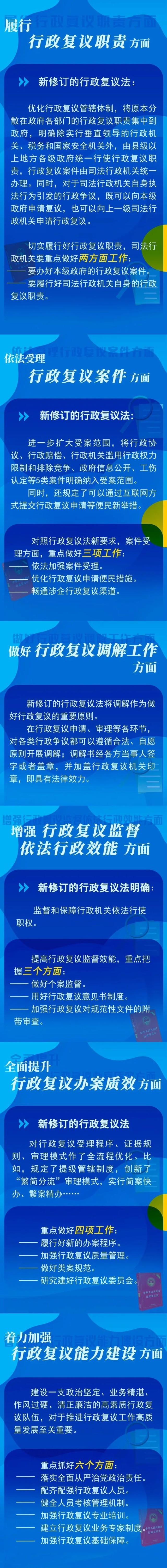 據(jù)悉,新修訂的行政復(fù)議法已由全國人大常委會會議表決通過,自2024年1月1日起施行。司法部有關(guān)負(fù)責(zé)人表示,司法部將加快完善配套制度機制,修訂行政復(fù)議法實施條例,制定《行政復(fù)議人員工作規(guī)范》《行政復(fù)議聽證規(guī)則》等工作制度。各級司法行政機關(guān)將加強與人民法院工作聯(lián)動,強化行政復(fù)議、行政訴訟銜接配合,實現(xiàn)理念對接、機制銜接、信息共享,形成深化訴源治理的合力。