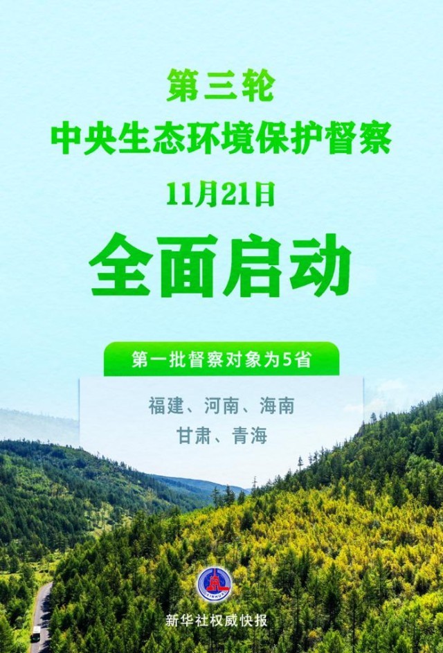 根據(jù)《中央生態(tài)環(huán)境保護(hù)督察工作規(guī)定》,經(jīng)黨中央、國務(wù)院批準(zhǔn),第三輪中央生態(tài)環(huán)境保護(hù)督察于11月21日全面啟動(dòng)。