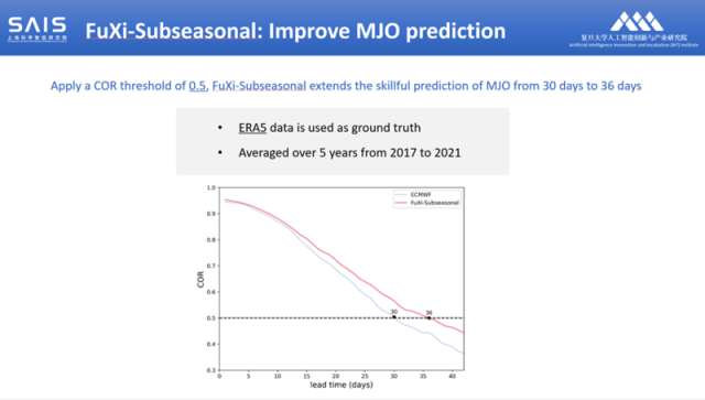 特別值得一提的是,“伏羲”次季節(jié)大模型顯著增強了預測馬登-朱利安振蕩(MJO)的能力,將預測MJO的時間從30天延長到了36天,這一結果超過公認權威的ECMWF S2S的預測能力。