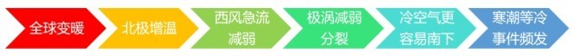 赤道與極地之間存在巨大溫差,這種差異促使極圈外圍形成了一圈強勁的西風,環(huán)繞在極地周圍,它被稱之為西風急流。西風急流就像“圍欄”一樣,約束著極地的冷空氣。穩(wěn)定的極渦被強大的西風急流限制在北極地區(qū),在全球變暖背景下,北極地區(qū)增溫速度是全球的2-3倍。北極地區(qū)增溫,與中低緯度氣溫差減弱,難以維持強大的西風急流,極渦內(nèi)的冷空氣變得“躁動不安”,更容易分裂南下。北極來的冷空氣,其溫度遠遠低于我們生活的中低緯度地區(qū),多次出現(xiàn)的寒潮天氣讓我們感到“冷冷冷”。