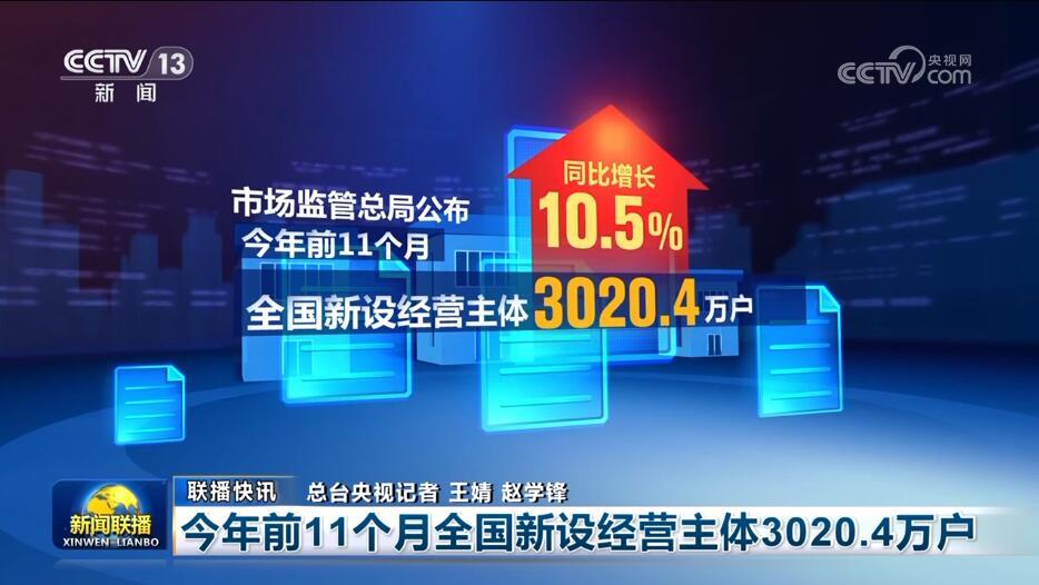 今年前11個(gè)月全國新設(shè)經(jīng)營主體3020.4萬戶